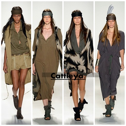 Los conjuntos finales del desfile me recuerdan bastante a la cultura Indoamericana, es decir, prendas que podría llevar Pocahontas sin ningún problema.